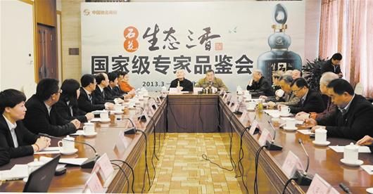 图为:3月19日,湖北省石花酿酒股份有限公司“生态三香酒”国家级专家品鉴会在北京召开,国内一流品酒师对该酒的品质给予高度