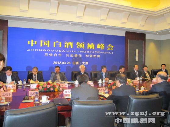 2012年3月28日,由中国酿酒工业协会举办的“中国白酒领袖峰会”在山西太原隆重召开。中国酿酒工业协会理事长王延才、中国白酒标准化技术委员会主任委员季克良、贵州茅台酒集团有限公司董事长袁仁国、宜宾五粮液集团有限公司董事长唐桥、江苏洋河、双沟集团有限公司董事长杨廷栋、泸州老窖股份有限公司总裁张良、山西杏花村汾酒集团董事长李秋喜、四川沱牌舍得股份有限公司董事长李家顺、中国酿酒工业协会白酒分会秘书长赵建华等协会领导以及部分企业领导出席了峰会。中国酿酒工业协会白酒分会副秘书长宋书玉、甘权,中国酿酒工业协会产业政策研究室副主任李言冰等20余人参加了会议。