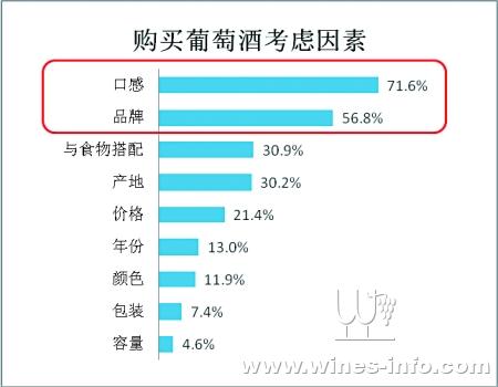 调查报告还显示,在购买葡萄酒时的考虑因素中,口感和品牌位列前两位,45%的重庆居民主要在家中饮用葡萄酒,其次是在饭店和餐厅,但是在夜场等娱乐场所重庆消费者基本没有饮用葡萄酒的习惯。