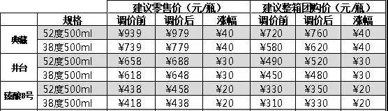 7月份,水井坊发布“关于产品价格调整的通知”。通知称,水井坊将上调产品价格,主力高档及中高档产品典藏、井台、臻酿八号的出厂价分别上涨15元/瓶,10元/瓶,10元/瓶。